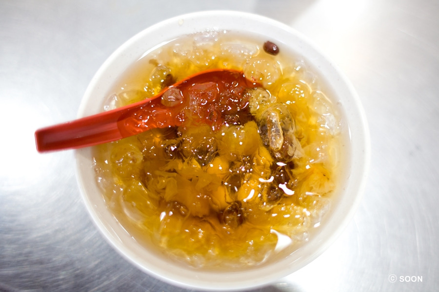 중국말해서,음료수 아줌마가 어제도 그렇고 오늘도 그렇고 자꾸 중국말해서, 메뉴판 달라고 해서 받았는데, 나중에 내 앞에 앉은 커플이 약간 빙수 같은 거 먹길래 그거 주문했다. 메뉴판에 1번에 있는 걸로 보아 대표 메뉴인 것 같아 보였다. 어제는 안보였던 메뉴가 보이는 걸 보면 나도 이제 페낭에 적응했나 보다 싶었다. 오리 국수를 먹다가 중간에 칠리소스를 국수에 다 넣고 먹었는데, 역시 한국사람은 느끼한 맛을 싫어해서 그런지 칠리 넣은 게 더 맛있었다. 잘 먹고 디저트 도전! 내가 시킨 빙수 같은 거는 팥, 콩, 리치 같은 과일, 그리고 은행! 이 들어갔고 차인지 설탕물인지 색은 보리차 색인데 암턴 얼음 동동 띄워져서 나온다. 생각보다 안 달아서 쭉쭉 맛있게 먹게 된다. 오리 국수가 조금 짜서 그런지 조금 달달하고 시원한 디저트가 훨씬 맛있게 느껴졌다.