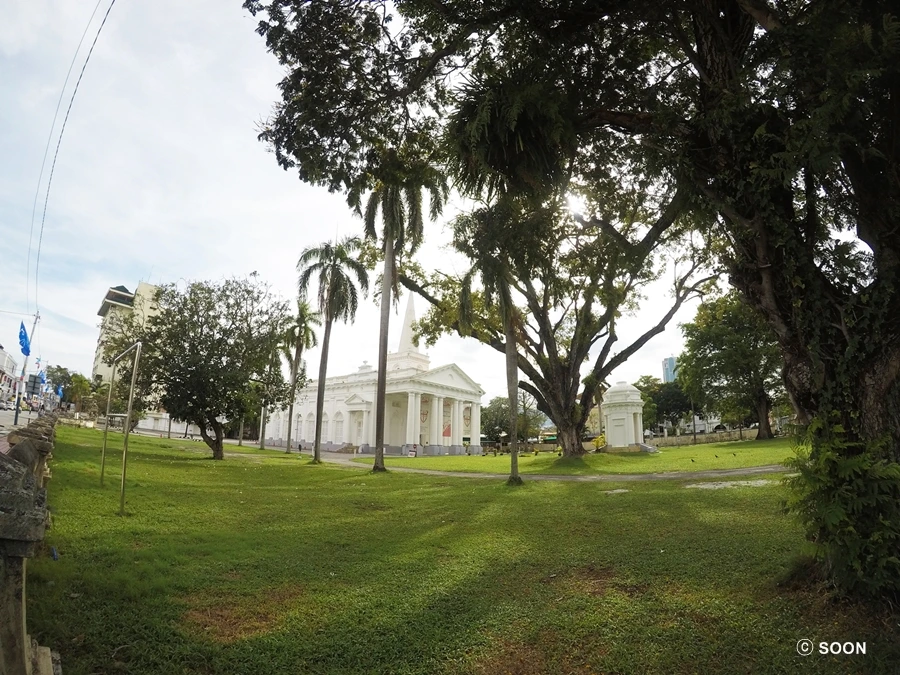 숙소에서 걸어서 약 3분 거리에 CAT 무료 셔틀버스 정류장이 있는데, 버스를 앉아서 기다렸다. 5분 정도 기다리자 버스가 와서 잘 탔다. 한데 사람이 많아서 아저씨가 현지 말로 뭐라고 샬라 샬라 하는데 아마도 안으로 들어가라는 소리 같아서 안으로 쏙~ 들어가니 문 닫고 출발! 두정거장을 지나니 St. George's Church라서 바로 내렸다. 문을 닫아서 안에까지는 못 들어갔지만 사진도 찍고 영상도 찍고 기억을 더듬어서 시계탑을 찾아갔다. 걸어가다 보니 작은 공원 같은데에서 알럽 페낭 글씨도 보고, 3년 전엔 없었는데 ㅎㅎ 하면서 사진 찍고 그랬다.