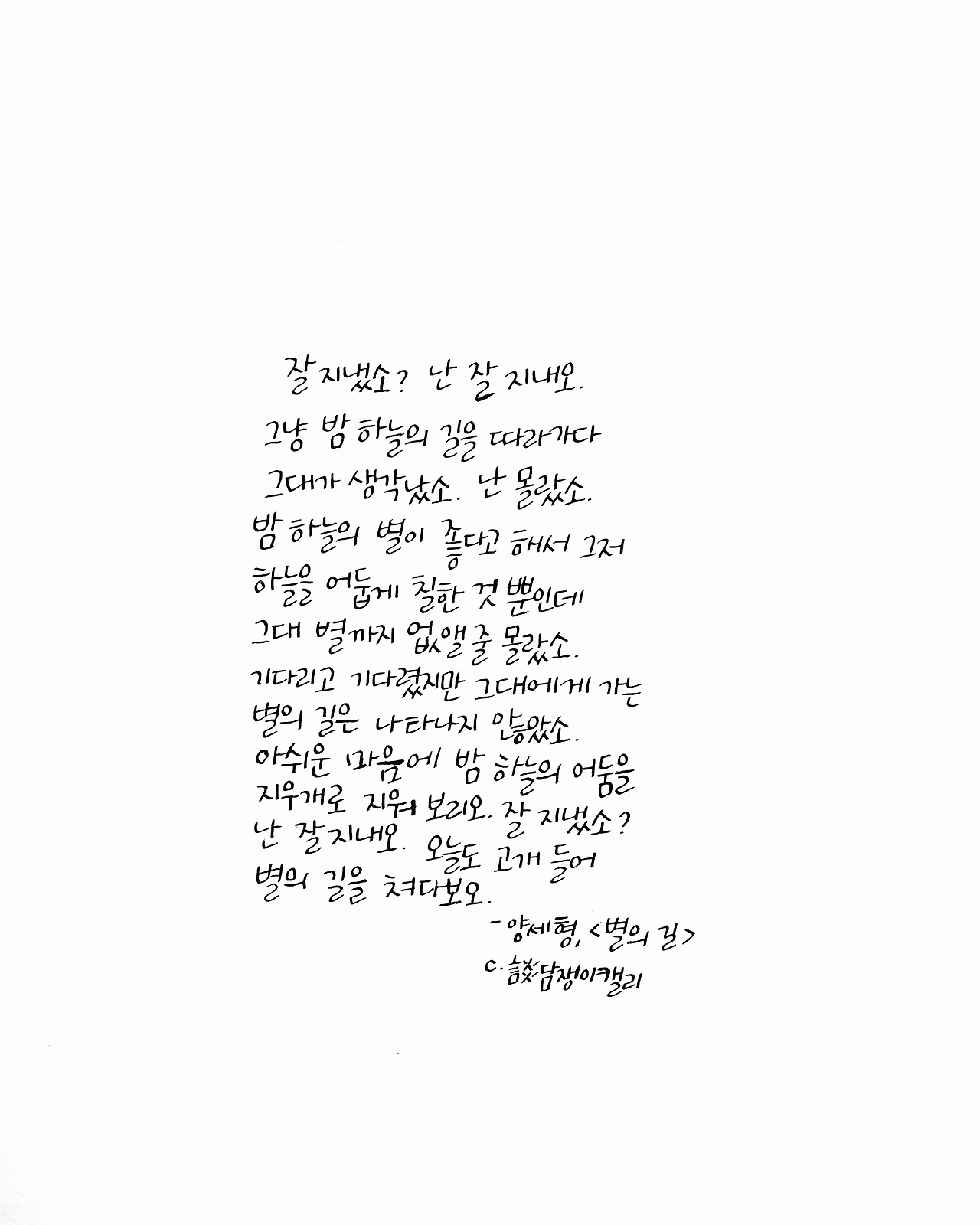 약간은 추상적이고 감상적인 글이 된 것 같은데, 아무 말하지 않는 바다와 육지를 두고 제 스스로 해피 혹은 새드로 결정되는 엔딩을 짓고 싶지 않았어요. 만약 진짜 새드였다면 바다는 지금처럼 쉬지 않고 흐르지 않을 거라는 생각이 들어서 쓰다 보니 '만약'이라는 가정으로 시작해 '~할 수 있을까'로 끝낸, 어쩌다 보니 주제에 충실한 글이 되었네요. 모두 좋은 밤 보내세요 :)