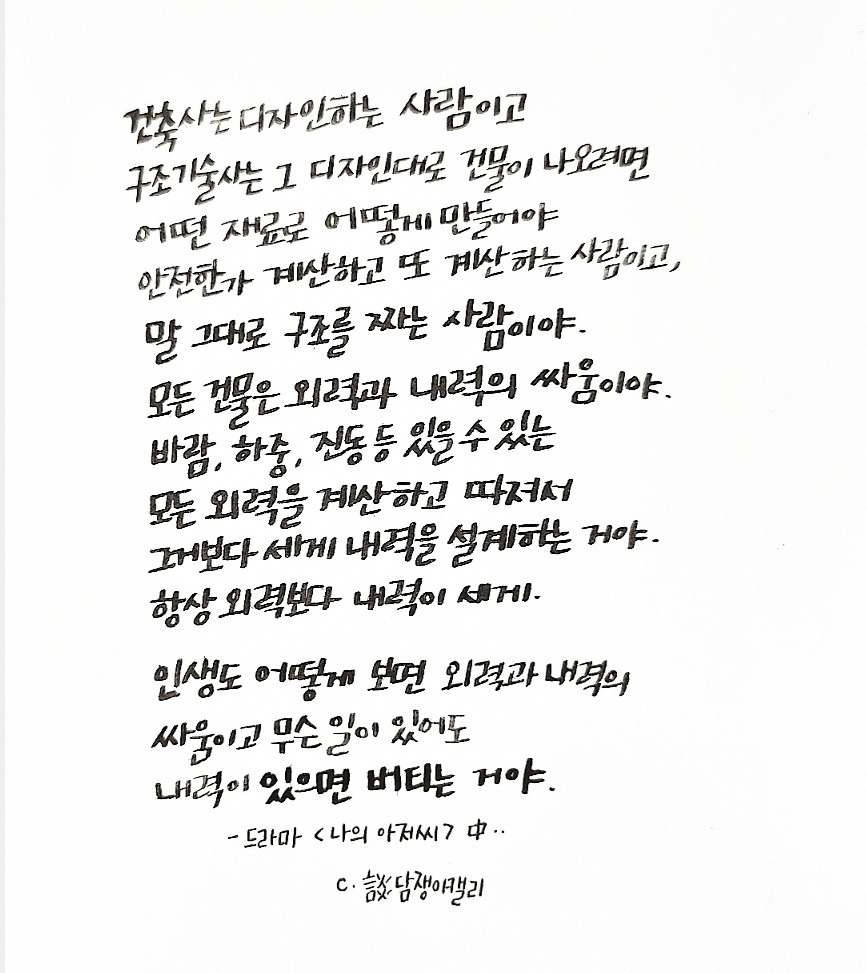 감히 나는 엄마 아빠 같은 어른이 될 용기도 자신도 부족해, 가장 가까운 어른으로서 막중한 자리를 지켜주셔서 감사하다는 말을 꼭 전하고 싶다.