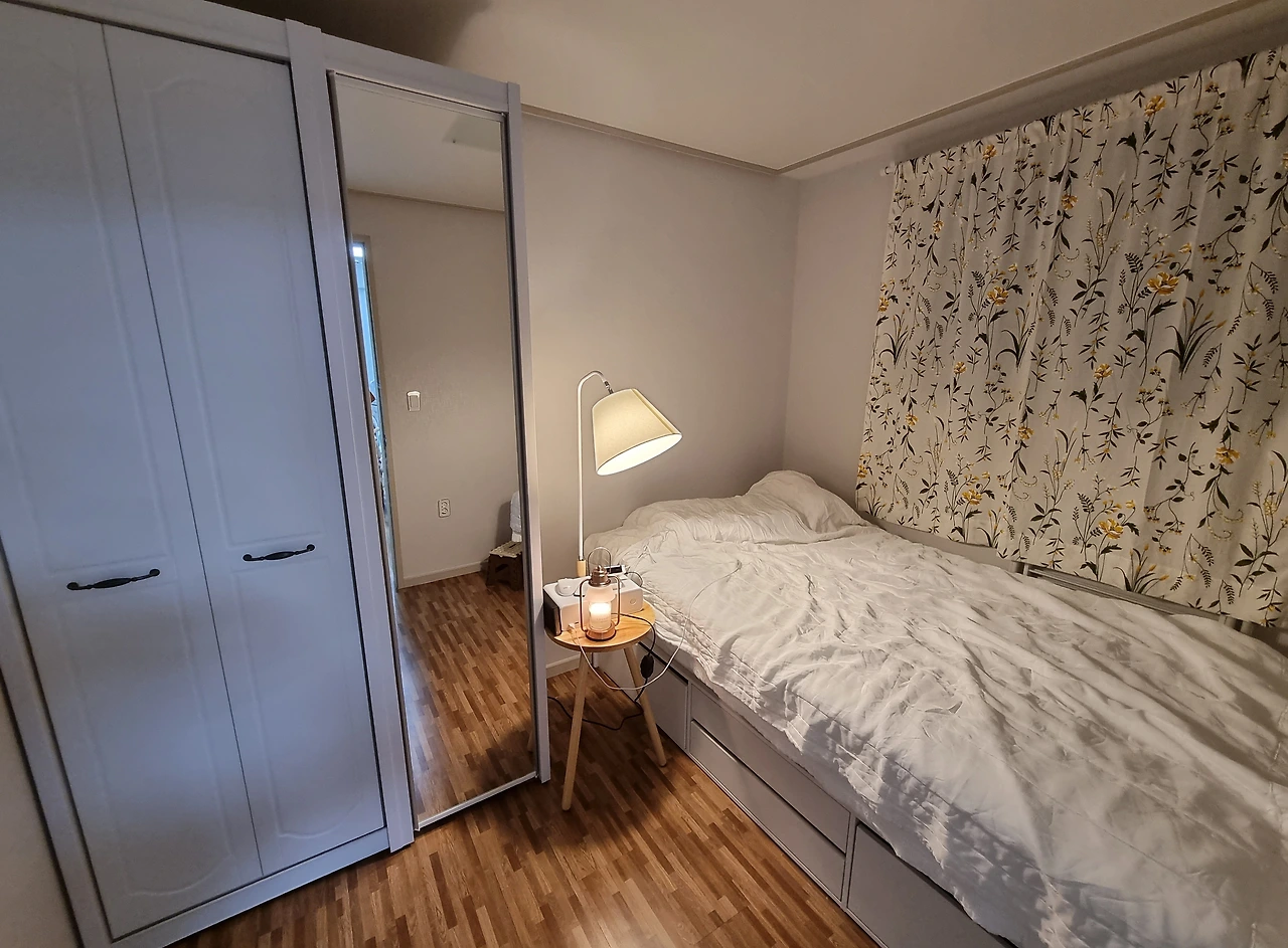 이 사진에는 없지만 겨울 이불은 자취방 커튼과 세트로 맞췄다