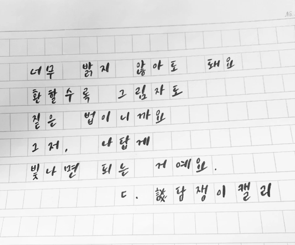 버스는 기다리면, 또 오니까 너무 조급할 것도 속상할 것도 없었다. 제시간에 도착하는 인생이면 좋겠지만, 원하는 시간에 도착하지 못한다고 해서 너무 슬퍼할 일도 아니었다. 사람마다 다리 길이가 다르고 보폭이 다르듯 각자의 걸음으로 가는 생(生)이니, 나도 나의 걸음으로 꾸준하게 갈 수 있으면 그것으로 충분한 일이었다. 난생처음 타 본 버스에서 목적지를 한참 지나쳐 낯익은 길이 나올 때까지 하염없이 걷고 또 걸어 집에 도착했던 그 날처럼. 느리고 서툴러도 가고자 하는 곳까지 꾸준하게 걸어갈 수 있는 힘만 있으면 되는 일이었다.