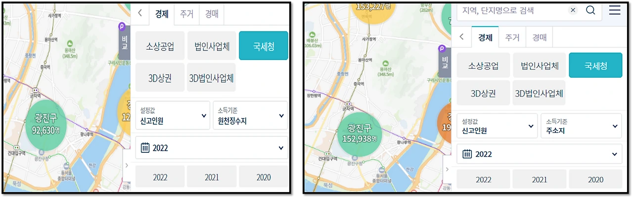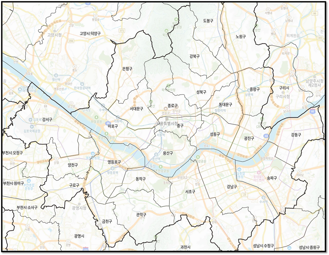 일단 광진구가 서울 경기도에서 어느 수준의 위상을 가지고 있는지 파악하는 게 좋습니다.