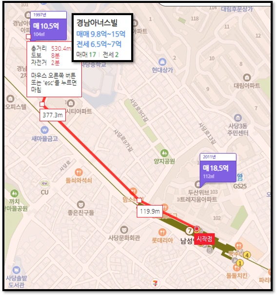 동작구 사당동이 10분 가치가 더 높은데, 가격은 7천만 원이 더 싸죠.