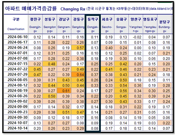 하지만 이번 9월이 지나면서부터 동작구의 흐름이 다른 구들에 비해서 둔화된 게 보이죠