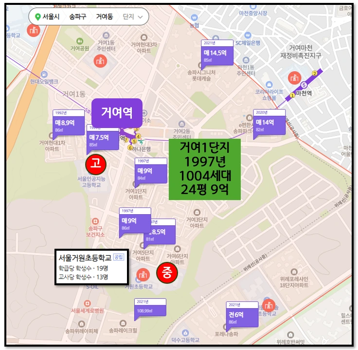 마지막으로 거여동에 거여 1단지입니다.