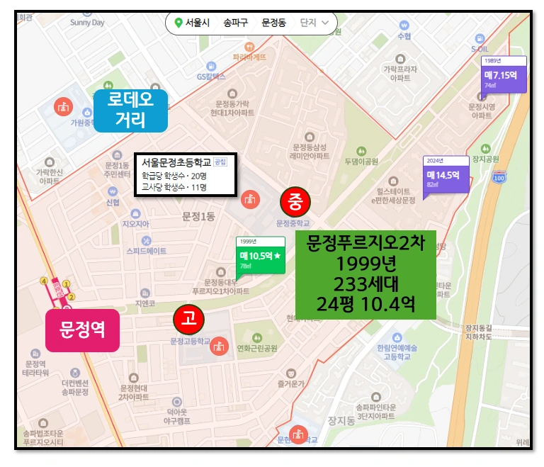 하지만 입지는 문정역 근처인 푸르지오 1차가 더 좋겠죠?