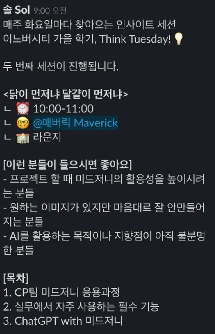 맹모삼천지교라 했던가요. 이런 환경에서 커리어를 시작한 저도 어느새 직장인보다 직업인으로 업을 대하고 있는 거 같아요. 개인주의 성향이 강했던 저는 생각과 고민을 나누는 것이 익숙해졌고, 어설프지만 작은 배움이라도 나누고 싶은 마음에 뉴스레터를 써 공유하거나, 업무 간의 시행착오를 세션의 형태로 나누기도 했죠.