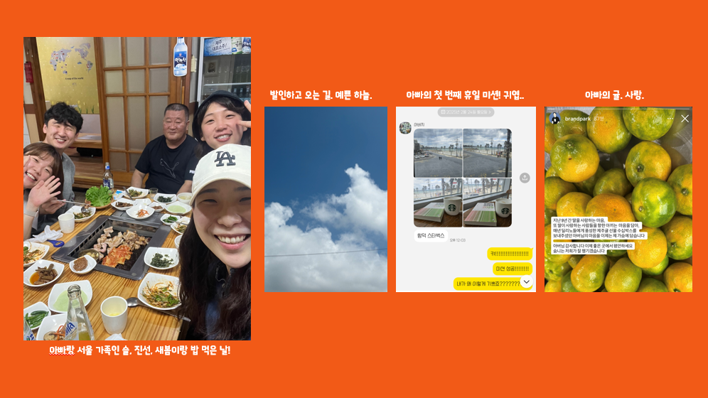 진선이랑 시니어를 위한 브랜드를 만들기로 하고 아이데이션을 하면서 가장 많이 하는 말이다. ‘우리 아빠가 할까?’, ‘우리 아빠는 그런 거 안 해봐서 어려워할 텐데’, ‘아빠는 시작조차 안 하려고 할걸?’. 시니어를 위한 브랜드라고 했지만 사실 아빠를 위한 브랜드를 만들고 싶었다. 비즈니스 적으로는 부를 갖추고, 자기 삶을 즐길 줄 아는 타깃, 액티브 시니어, 프리미엄 에이지에 기회가 있다고 하지만 가장 첫 사용자가 우리 아빠가 되길 바랐다. 누구보다 성실하게 일해 온 아빠. 휴일 없이 매일 새벽 가게 문을 여시고, 하고 싶은 일보다 해야 하는 일을 하며 대부분의 일생을 보내온 분. 쉬는 것보다 일을 하는 게 마음 편하고, 쉬는 날에 뭘 하고 놀 지 고민하는 게 오히려 일인 분. 늘 본인의 행복보다 자식들의 행복이 우선순위인 지극히 대한민국 평균 부모님. 그런 아빠, 엄마가 열심히 살았던 지난 시간을 인정받고, 인생 2막을 즐겁게 살아볼 용기를 주는 그런 브랜드를 만들고 싶다. 자식 때문에 사는 게 아니라 스스로를 위해 사는 삶의 기쁨을 누리는. 비록 이제 ‘아빠 내가 이런 거 만들면 해 볼 거예요?’라고 물어볼 아빠가 없는 게 슬프지만 내가 만드는 첫 번째 브랜드는 여전히 우리 아빠를 위한 브랜드가 될 거다. ‘귀한 딸 수민이가 아빠의 행복을 그렇게도 바랐구나’라고 아빠가 하늘에서 보실 수 있으니. 그제야 ‘아빠의 자랑스러운 딸’ 타이틀 앞에 부끄럽지 않을 수 있을 것 같다.