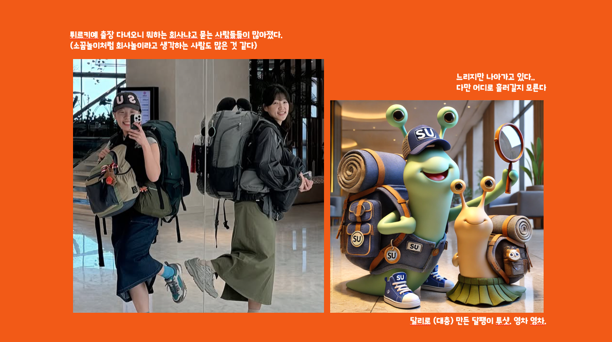 2주간의 튀르키예 출장 (겸 긴 여행)으로 회사를 비우고 추석 연휴가 끝나기 전 출근을 했다. 출장 가기 전날 돌아와서 하자고 칠판 한 켠에 '아이템 3개 정리하기'라고 써두고 갔는데 진선이와 나, 둘 다 또렷하게 기억해내지 못하는 걸 보니 다시 고민이 많이 필요한 단계구나 싶었다. 회사 다닐 때는 늘 속도전으로 일했던 것 같은데, 3無(브리프 없이, 데드라인 없이, KPI 없이)로 무언가를 만드는 일을 처음 하다 보니 거북이보다 더 느린 달팽이의 속도로 나아가는 기분이 들어 답답하지만 매일이 배움이라고 믿고, 천천히 우리만의 페이스로 소화시키면서 나아가려고 노력 중이다. 이번 주 달팽이 레이스 갈림길에서 마주한 큰 깨달음에 대한 회고를 남겨본다. 이 어려움을 같이 나눌 수 있는 달팽이 친구가 있어서 외롭지 않다. (흑)