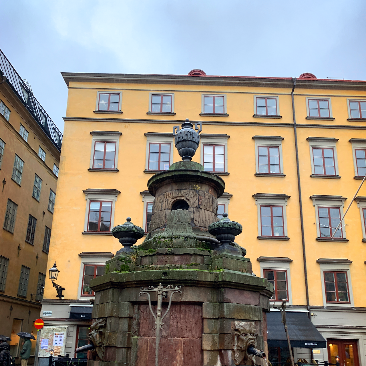 우산을 쓰고 다시 걷다 보니 감라스탄에서 가장 유명하다는 스토르토리예트 광장이 나왔다. 귀여우면서 긴 이름은 헷갈리지만 광장의 색감은 잊기 힘들다. 광장에는 노벨박물관, 그리고 아주 오래된 우물이 있다.