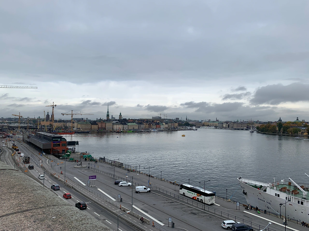 내가 묵는 호텔에서 지하철을 타고 한 정거장을 가면 ‘슬루센’ 역이다. 이 역은 쇠데르말름에서 굉장히 중요한 역 중 하나다. (물론 나에게만 그럴 수도 있지만) 다음 역이 감라스탄이어서 더 그렇게 느껴지는 것 같다. 슬루센 역에서 내리면 근처에 한창 커다란 공사가 진행 중이라 꽤 복잡하게 보인다. 구글맵에 의존하며 공사 중인 길을 걷는데 갑자기 앞에서 자전거가 빠르게 달려오며 나에게 경적을 울렸다. ‘헉, 웬 자전거가 이렇게 빨리 달려?’ 하고 생각하며 발아래를 봤는데 자전거 그림이 있었다. 공사 중이라 잠시 작은 터널로 길이 두 갈래가 되었는데, 인도와 자전거 도로가 나뉜 것이었다. 그리고 하필 나는 자전거 도로를 걷고 있었다. 순간 창피한 마음에 빨리 걸어 터널을 나와 인도로 얼른 옮겨갔다. 다시는 민폐 끼치지 않도록 발아래 그림과 표지판을 잘 살펴야겠다. 당황한 마음에 심장이 쿵쿵거려서 호흡을 가다듬고 주변을 둘러보며 길을 걸었다. 10분 정도 걸었으려나, 어느새 높은 지대를 걷다 보니 경치가 눈 앞에 시원하게 펼쳐졌다.