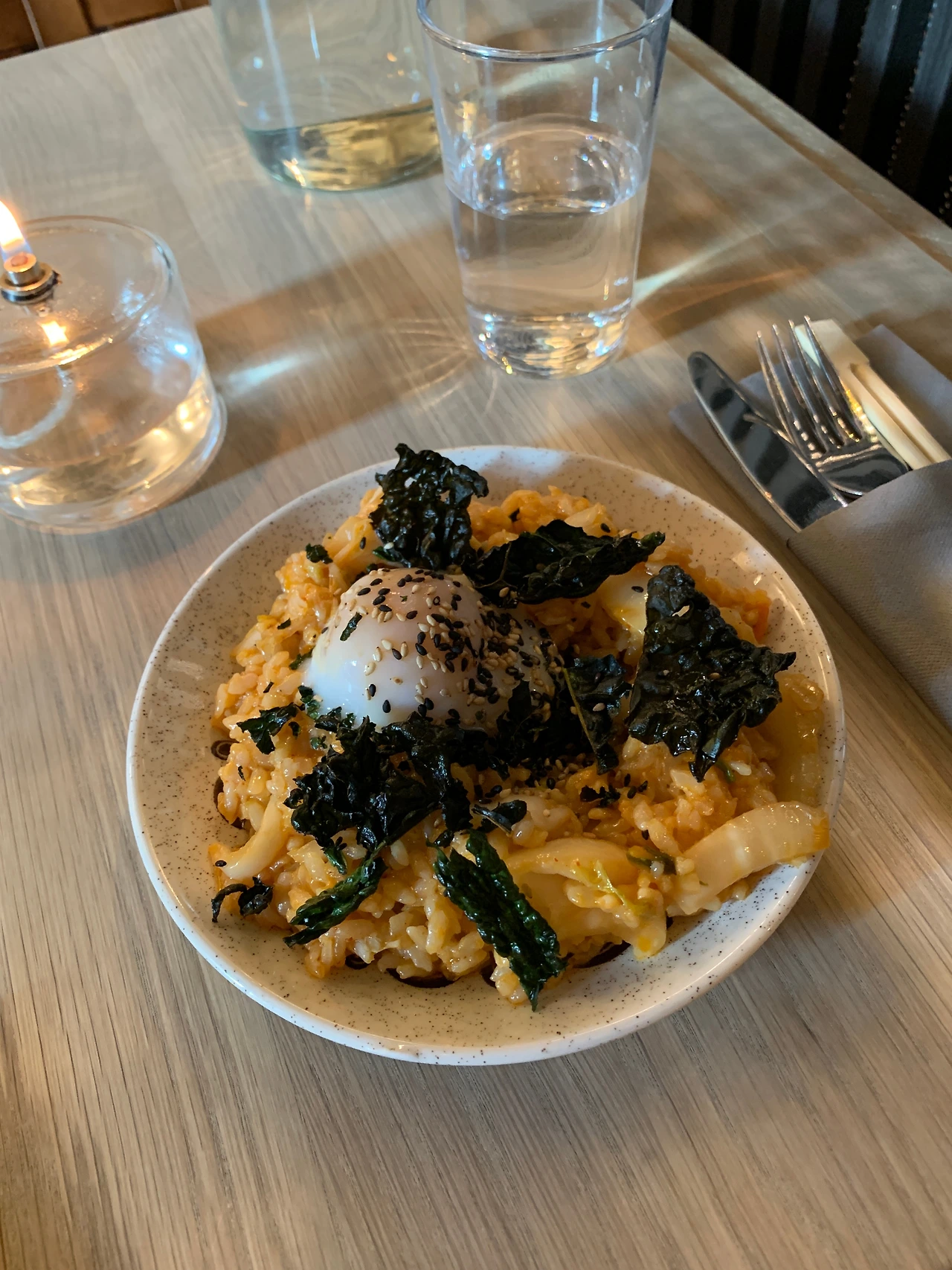 그림 같은 풍경을 꼼꼼히 눈에 담고 허기진 배를 채우러 근처에 찾아놓은 식당으로 갔다. 이 곳에는 스톡홀름에서 보기 힘든 특별한 메뉴가 있어서 찾아왔다. 아직 이른 저녁시간이라 한가로운 분위기였다. 여럿이 모여 이른 저녁 식사를 하거나 나처럼 혼자 온 손님도 있었다. 이 곳은 요즘 신세대 다운 덮밥을 파는 식당인데 특이하게도 김치가 들어가는 메뉴가 있다. 겨우 며칠 만에 고향의 맛이 그리워진 나에게 정말 반가운 메뉴가 아닐 수 없었다. 다른 메뉴를 볼 필요도 없이 김치가 들어가는 메뉴를 주문했다. 아마도 김치볶음밥 비스무리한 것 같았다. 나를 기대하게 만든 그 메뉴는 김치를 물에 헹군듯한 비주얼과 맛으로 나타났다. 하하하. 김인 줄 알았던 검은색의 정체는 무슨 버섯 같은 거였다. 누가 좀 스웨덴에 김을 수출해주었으면.