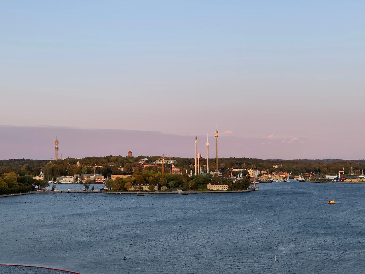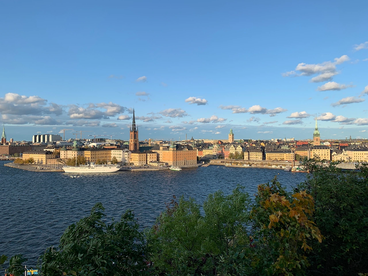 오늘 오후에는 꼭 하고 싶은 일정이 있어서 호텔로 다시 돌아왔다. 왜냐하면 호텔 근처에 갈 곳이 있기 때문이다. 마침 날씨가 더 쌀쌀해져서 옷을 하나 더 껴입고 나가기로 했다. 호텔 근처에는 공원이 하나 있는데 약간 높은 지대에 있어서 언덕길을 올라가야 한다. 언덕길을 올라가며 골목골목 구경하는 재미가 있었다. 각기 다른 색을 가진 건물들에 자그마한 상점들이 많이 보였다. 돌바닥 길을 걷다가 돌계단을 올라가고 막다른 벽이 보였다. 벽을 따라 오른쪽으로 조금 가다 보니 초록색 잎이 무성한 커다란 나무가 있는 공원이 있었다. 철문을 열고 들어가니 아이들을 위한 놀이공간이 만들어져 있었다. 공원의 규모는 아주 작은 편이며 주로 현지인들이 방문하는 곳 같았다. 하지만 누구라도 이 공원에 도착했다면 바로 ‘우와!’하고 겉으로 혹은 속으로 탄성을 지를 것이다. 강 건너 스톡홀름 시청의 전경이 한눈에 보이는 곳이기 때문이다. 마치 파노라마 뷰를 보는 듯하다. 스톡홀름에서 나만 알고 싶은 곳이기도 하다.