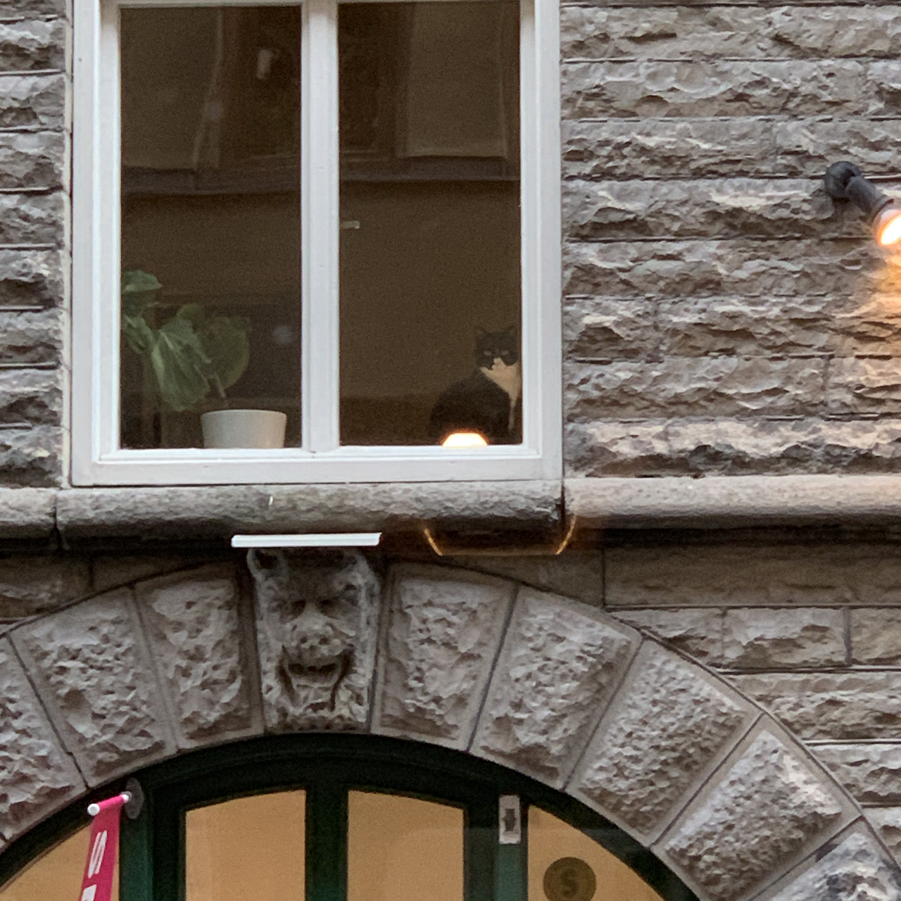 곧 피자가 나왔는데 귀엽게도 셀프로 잘라먹을 수 있도록 피자 커터도 함께 주어졌다. 화덕에 잘 구워진 피자는 쫄깃하고 맛있었다. 비 오는 날 창가에서의 피맥은 상상외로 운치 있었다. 그렇게 분위기를 즐기며 피자를 먹고 있는데 어디서 누군가가 자꾸 쳐다보는 듯한 느낌이 들었다. 지나가는 사람이 몇 없는데 이상하다 싶던 순간, 맞은편 건물의 창가에 누군가가 나를 뚫어져라 쳐다보고 있었다. 항상 나처럼 창가에 앉아 피자를 먹는 사람들을 구경할 것 같아서 웃음이 나왔다. 그 정체는 바로 새까만 턱시도를 입은 고양이.