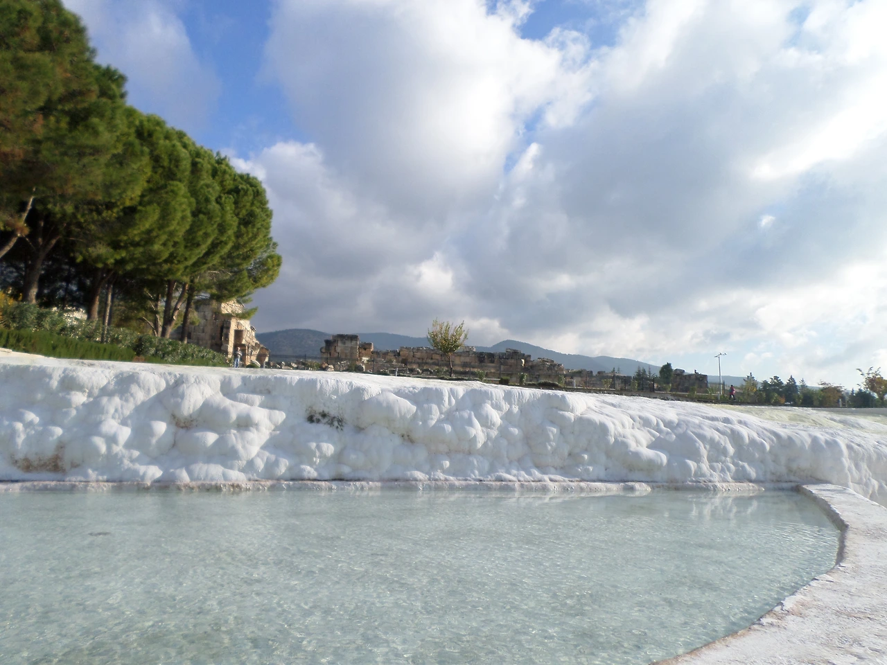 꼭대기까지 다다라 젖은 발을 말린 뒤 신발을 신고 히에라 폴리스 유적지를 보러 갔다. 고대 로마 유적들이 남아있었다. 발굴된 이 유적지에는 원형 극장, 공동묘지, 목욕탕 등이 폐허가 된 채 넓게 흩어져있었다. 실제로 옛 목욕탕에는 물을 채워 현대에도 고스란히 체험할 수 있도록 온천 수영장으로 만들어졌다. 수영장 밑바닥에는 무너진 거대한 기둥들이 그대로 남아있고 주변은 카페로 꾸며져 있다. 수영복을 가져왔으면 고대 로마 시대의 황제들처럼 이 곳에서 수영을 해보는 영광을 누렸을 텐데, 참 아쉬웠다.