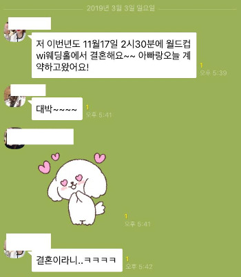 "저 11월 22일에 결혼해요! 식장 잡았어요^^"