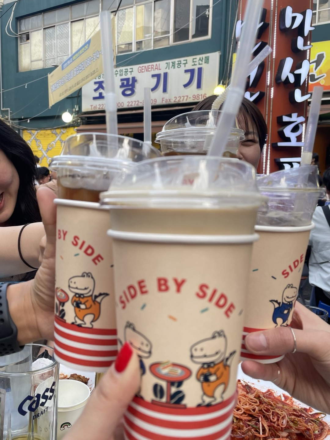 사람 많은 만선 호프까지. 그날 새로운 장소에서 새로운 시간에 오랜만에 다 같이 모인 우리들이 제법 웃겼고 귀여웠다. 그중 파워 I인 둘은 일 년 중 가장 많은 사람들을 보는 날 이라며, 기 빨리는 표정을 보고 너무 많이 웃었다.