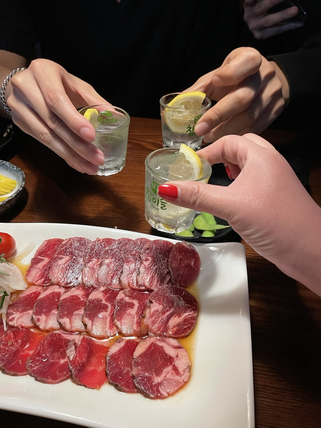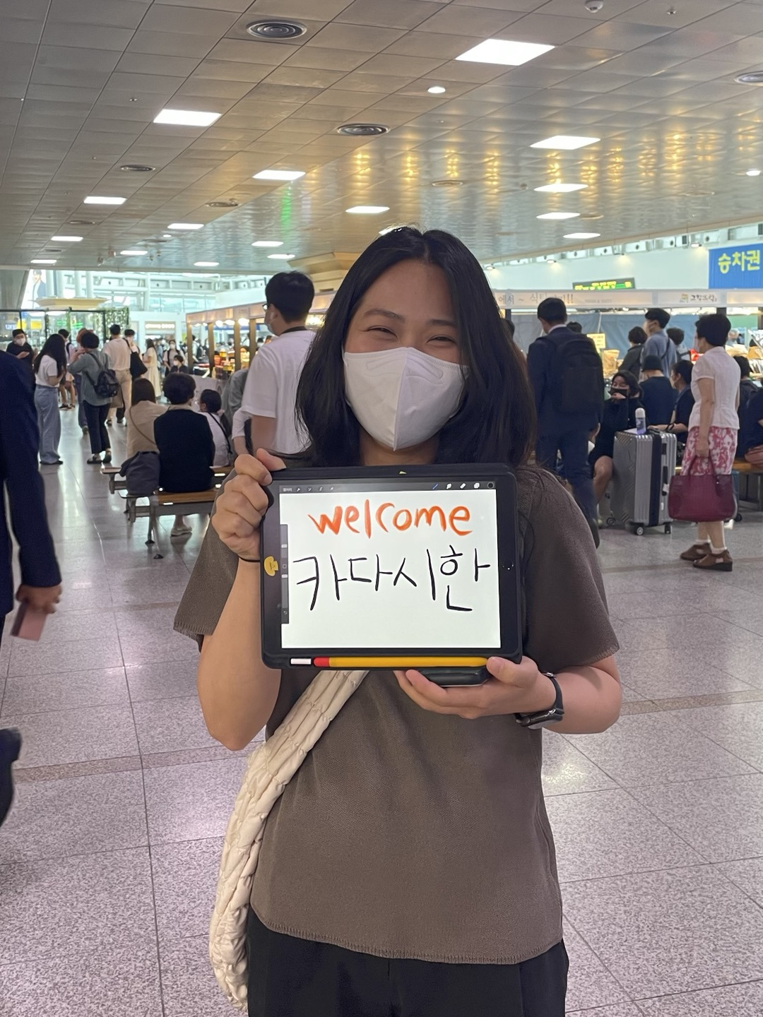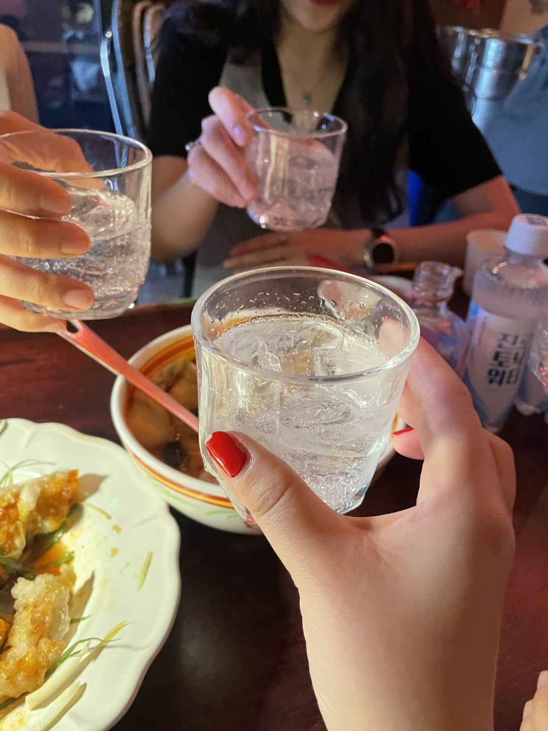 갑자기 저 앞에서 아이패드에 "웰컴- 카다시한" 웰컴 문구를 들고 웃으면서 서 있는 윤지를 발견했다. 가장 빵 터지고 신박했던 시간이 아닐 수 없었다. 아 정말. 윤지를 많이 만났는데 이런 새로움은 처음이었다. 이런 기발한 생각을 하다니, 이래서 나의 오랜 친구구나 싶었다. 그렇게 웰컴 가이드 윤지를 만나 친구들이 있는 곳으로 갔고, 소개팅 룩 입고 나온 민지 언니와 또 노는 시간에 잔뜩 설렌 지혜를 함께 마주했다. 우리는 다소 낯선 공간에서의 만남으로 초반 어색함을 즐기다 술을 마시러 갔다. 이 모임도 참 기분이 묘하다. 편하면서 중학교, 고등학교 시절에 본 건 아니지만 그래도 대학생을 함께 보내고, 벌써 어느덧 십 년을 함께 보낸 날들에 여러 마음이 교차하는 친구들이 모여 늘 따뜻한 마음을 나누게 된다.