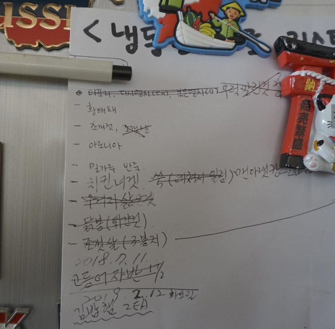 고민하다 문득 우리 집 냉장고에 붙어있는 '리스트'가 생각났다. 냉동실 어느 칸에 어떤 음식이 있는지 적어 놓으면, 문을 열기 전에 어떤 재료로 어떤 요리를 할지 정할 수 있어 좋았다. (물론 이걸 꾸준히 하기 위해서는 리스트를 주기적으로 업데이트 해 줄 누군가의 작은 배려가 필요하다)