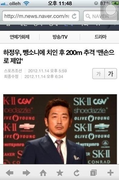 2012년 11월 14일, 스포츠조선에 실린 기사 제목은 "하정우, 뺑소니에 치인 후 200미터 추격, '맨손으로 제압'"이었다. 기사의 제목만 봐도 하정우가 뺑소니를 당했고, 자신이 직접 뺑소니범을 잡았다는 사실을 알 수 있다. 하지만 댓글은 난독 성 댓글로 가득했다.