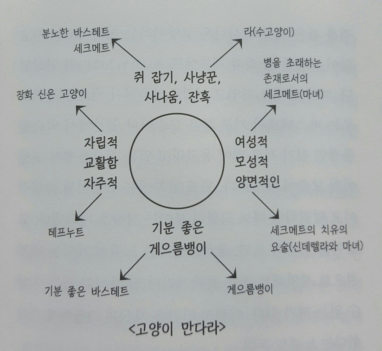 바바라 한나의 분류에 따라 고양이는 다양한 측면이 나타납니다. 긍정적, 부정적 측면이 모두 있죠. 그만큼 '고양이' 하면 떠올리는 이미지가 다양합니다.