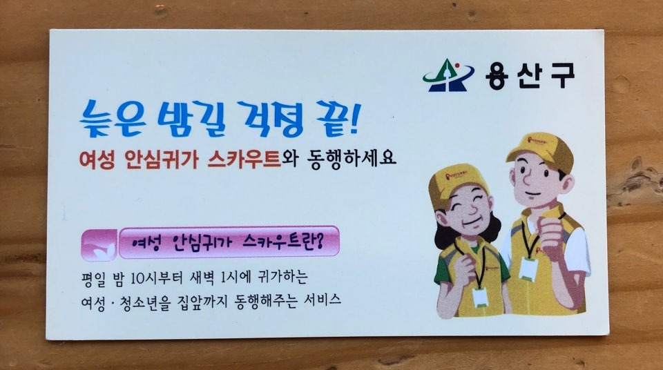 여성안심귀가서비스는 120에 전화하면 밤 10시~새벽 1시에 여성봉사자가 2인 1조로 집 근처까지 동행해주는 서비스이다. 안심이 앱을 깔고 신청해도 된다. 생활안전지도 앱으로는 현재 있는 지역의 치안사고 발생현황(성폭력)을 확인할 수 있다.