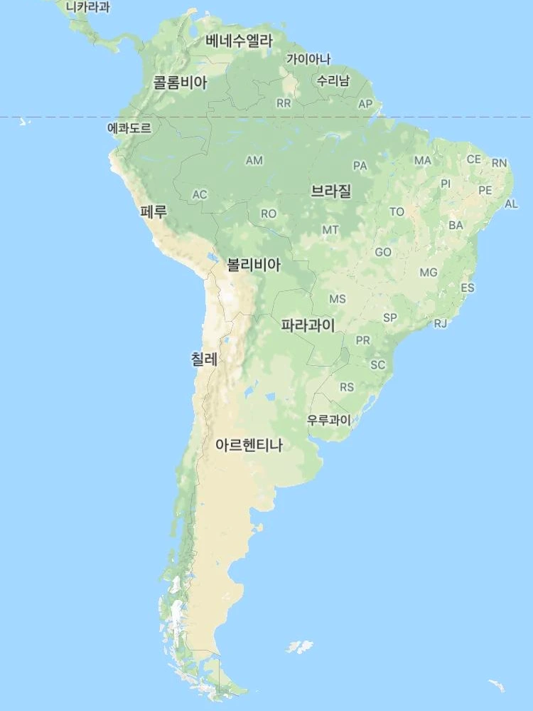 ▲ 광활한 남미 대륙 지도.