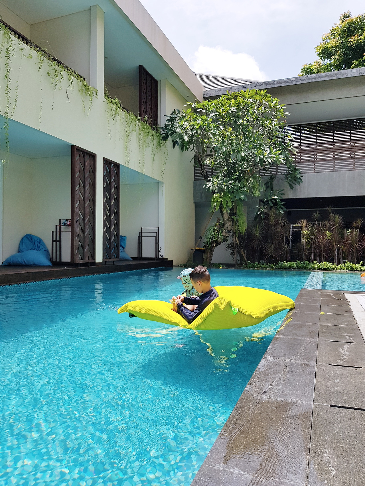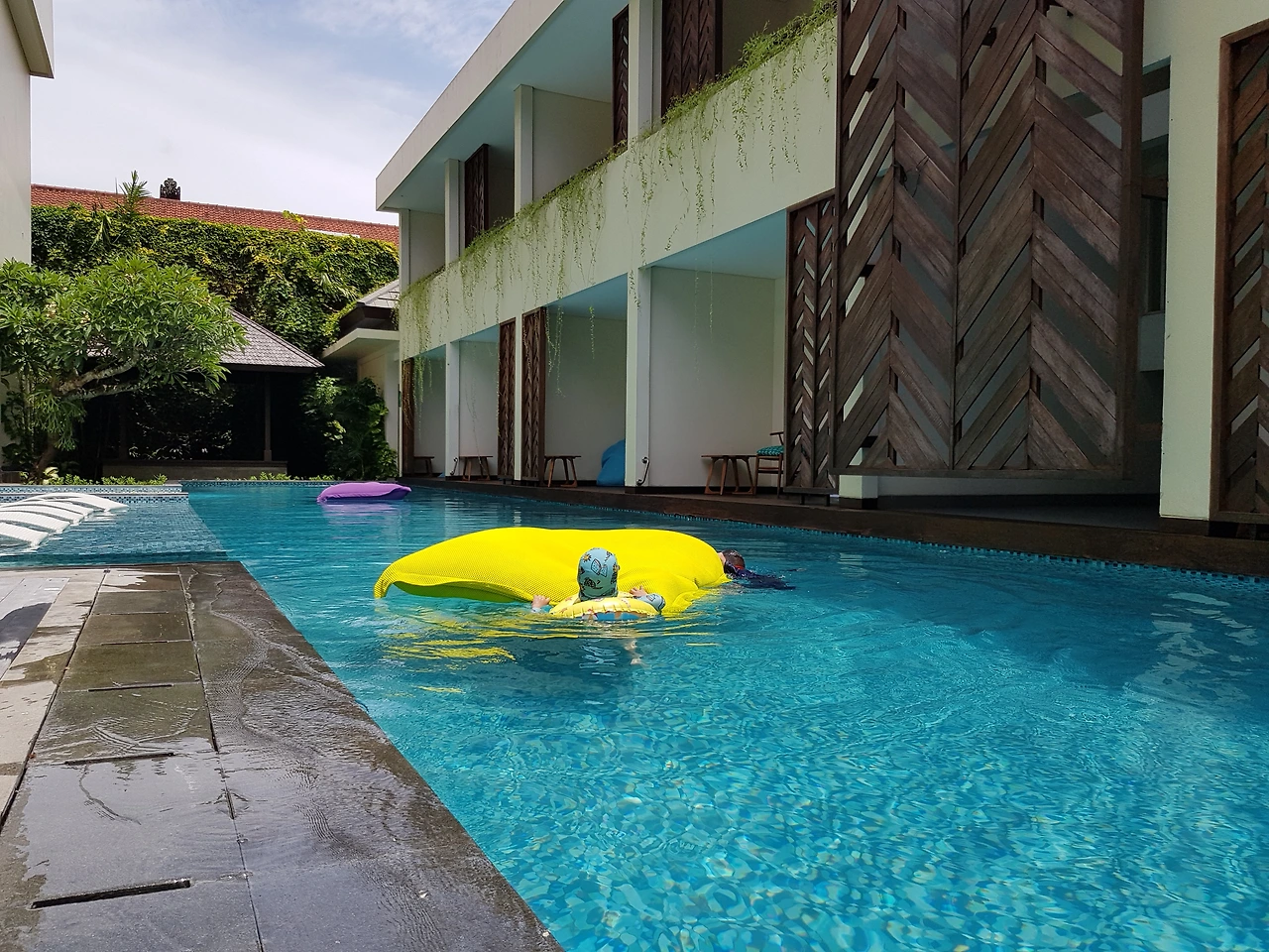도착한 날 너무 늦게 잠들어서 애들이 늦잠 자겠구나 예상했는데 웬걸, 발리시간으로 7시에 일어났다. 호텔에서 아침을 먹고, 애들 영상 좀 보게 하고 자고 싶었는데 보면서도 계속 날 찾아서 결국엔 한숨도 못 자고. 룸서비스로 점심을 해결하고 다 같이 호텔 수영장에서 시간을 보냈다. 다행히 우리가 노는 동안은 비가 안 왔는데 끝내고 나니 엄청난 소나기가 내리기 시작했다. 준비 다하고 쇼핑센터로 나가려고 했는데 도저히 나갈 수 있는 날씨가 아니었다. 완전 폭우가 내렸다. 계획을 수정하고 호텔에서 커피 한잔 마시고, 배달음식을 시켜서 호텔에서 저녁 먹었다. 시드니에서 여러 가지 일들을 정리하다가 보니, 발리 날씨 체크도 하지 못했다. 알고 보니 보통 2월 말까지 우기라고 한다. 우기라고 해도 하루 종일 비가 내리는 게 아니라 1시간, 어떨 땐 더 짧게 내리다가 그치니 비가 오는 시간을 피해서 다니면 여행 다니기 그리 불편하진 않을 정도이다.