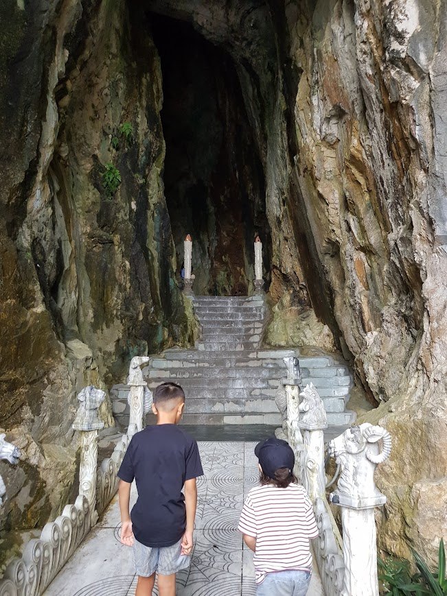 애들이 산을 좋아할까 싶어서 갈까 말까 고민하다 간 게 마블 마운틴이었다. 첫째는 태어나서 처음으로 하는 거에 의미를 두는 편인데, 이 날은 자기가 태어나서 처음으로 동굴에 가봤다며 아주 기뻐했다. 둘째는 처음에는 씩씩하게 들어가더니, 동굴에 들어갈수록 무섭다며 빨리 나가자고 했다. 나중에 왜 무서웠냐고 물어보니, 동굴 안에 있는 동상들이 진짜로 보였다고 했다. 하긴 둘째 나이( 여행할 당시 4살)에는 충분히 무서울 듯하다. 엘리베이터를 타고 산에 올라가면 비치도 보이고 산도 보이는 절경을 볼 수 있다. 올라갈수록 더 멋진 광경을 볼 수 있는데 하드코어 등산이 아니라 애들도 충분히 즐길 수 있는 코스이다. 다낭에서 한 달 넘게 7주 정도 지냈다. 일주일만 예약하고 도착한 다낭이 마음에 들어 계속 연장하다 보니 시간이 꽤 흘렀다.