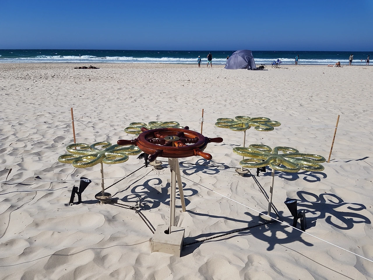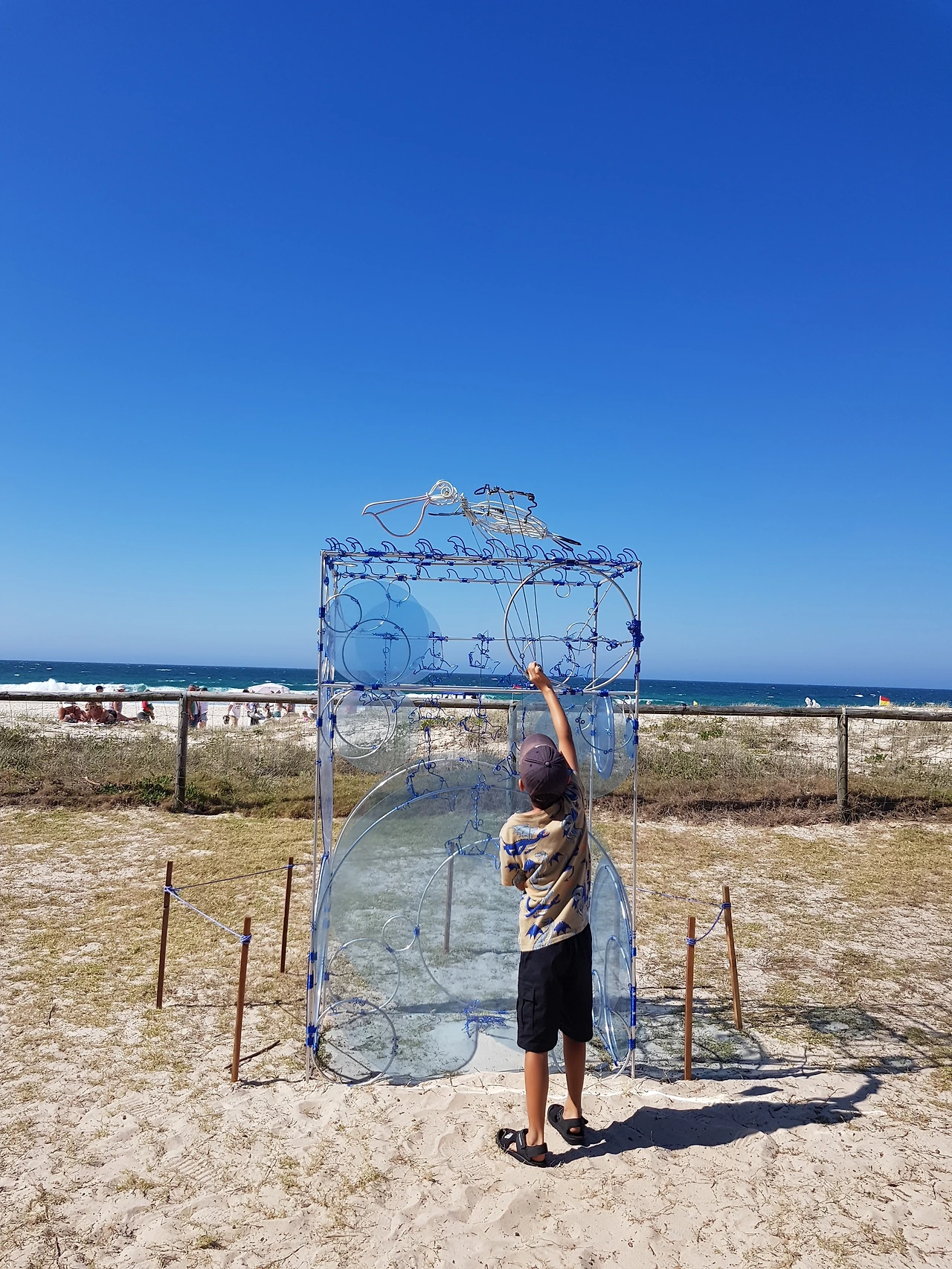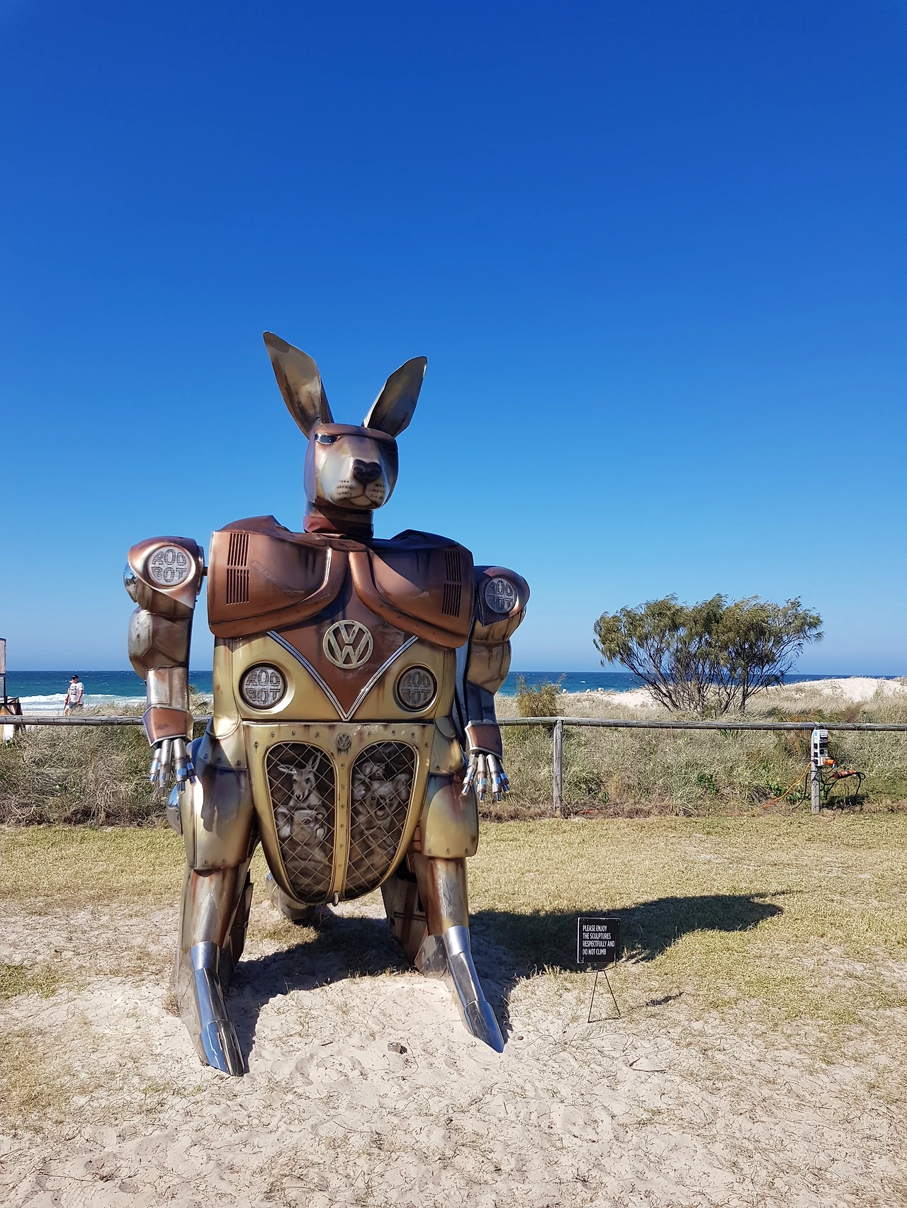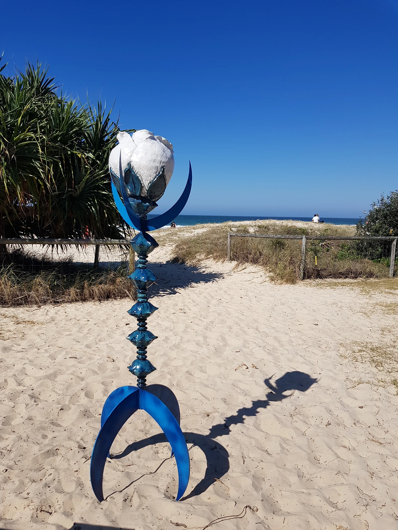 2018년에 골드 코스트에서 6개월 동안 살았을 때, 첫째 아들과 함께 왔던 기억이 있다. 올해는 둘째 아들까지 넷이서 다시 오게 되었다. 축제 기간이 길지 않은 데다가, 우리는 주말에 가는 바람에 사람들이 꽤 많았다. 주차를 저 멀리하고 걸어와야 할 정도 말이다. Swell이 열리는 장소는 바로 Currumbin Beach이다. 이 해변은 유난히도 바다모래가 곱디곱다. 맨발로 비치를 걸으며 조각 작품을 보는 게 꽤 낭만적이다. 조각 작품을 보고 있노라면 바다는 배경이 되고, 조각 작품과 어울려서 자연과 예술이 하나가 되는 것만 같다.