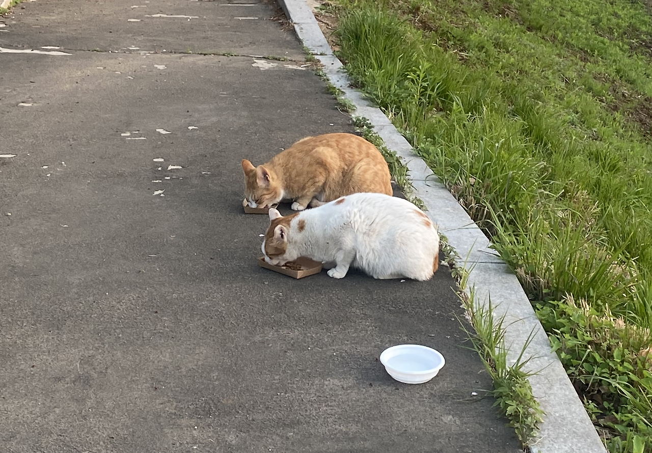 매일 오후 여섯 시가 되면 공원 한구석으로 이모가 온다. 고양이들 밥 주는 이모다. 내가 그를 그렇게 부르는 게 아니라, 그가 고양이들에게 자신을 이모라고 소개한다. “이모가 밥 줄게, 이리 와.” 이모는 양손에 검은 봉지를 들고 나타난다. 봉지 안은 가득 차 있다. 사료들일 것이다. 한참을 부스럭거리지만 정작 내놓는 건 밤색 동그라미들을 담은 그릇뿐. 인간이 먹는 초코볼과 비슷한 생김새다. 다른 사료들도 있다면 뭐가 있을지 궁금하다. 저 아이들도 같은 마음일 테지. 동물들은 봉지 곁을 지나 각자의 그릇 앞에 자리를 잡는다. 나란히 사료에 코를 박는다. 옆에 누가 지나가는 것도 모르는 채로. 혹은 무시하면서. 이모는 그들에게 이름을 지어줬고, 나는 그들의 이름을 안다. 라테, 삼색이, 나비. (삼색이는 오늘 나타나지 않았고, ‘나비’라는 이름은 예전에 옆을 지나가다 들은 거라 확실하지 않다.) 하지만 그들을 부르는 문장에서 아이들이 반응하는 단어는 오직 ’밥‘뿐이다. 라테라는 이름에도, 이모라는 소개에도 무반응이다.