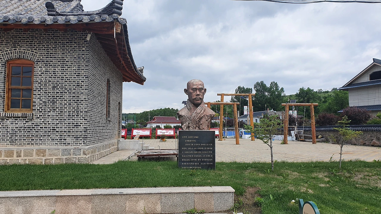 룽징 시내에서 택시를 잡아 타고 명동촌으로 갔다. 명동촌을 정말 산으로 둘러싸인 저 푸른 초원 위의 시골이었다. 산 아래 구릉 쪽에 조선인들이 살던 집들이 민속촌처럼 보존되어 있었다.