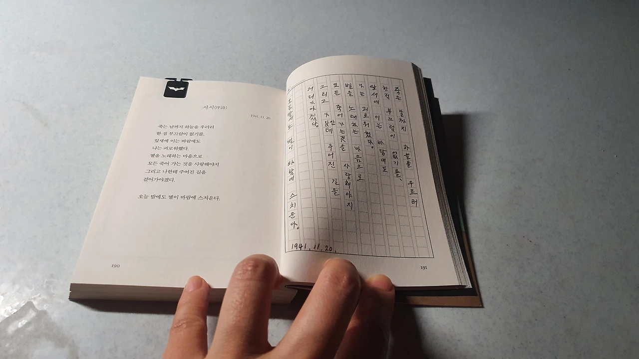 윤동주는 중국과 한국에서 모두 사랑받는 시인으로 미묘한 이견이 존재한다고 한다. 사실 역사를 잘 모르는 나로서는 뭐라 말하기 어려운 것 같지만, 확실한 건 윤동주가 어느 나라 사람이 건 그의 생각과 시를 사랑할 수밖에 없다는 것이다. 윤동주의 시는 그저 윤동주라는 사람의 것이며, 그가 사랑한 언어로 쓰인 시도 그가 당시에 느꼈던 내적 갈등과 투쟁도 우리에게 아직까지도 큰 울림을 주고 있다. 우리가 공유하는 것은 단순한 시가 아니라 그 시절 고뇌하던 청춘의 자화상이 아닐까. 그 여운을 간직한 채 '하늘과 바람과 별과 시' 초판본을 한 장씩 넘겨 본다.