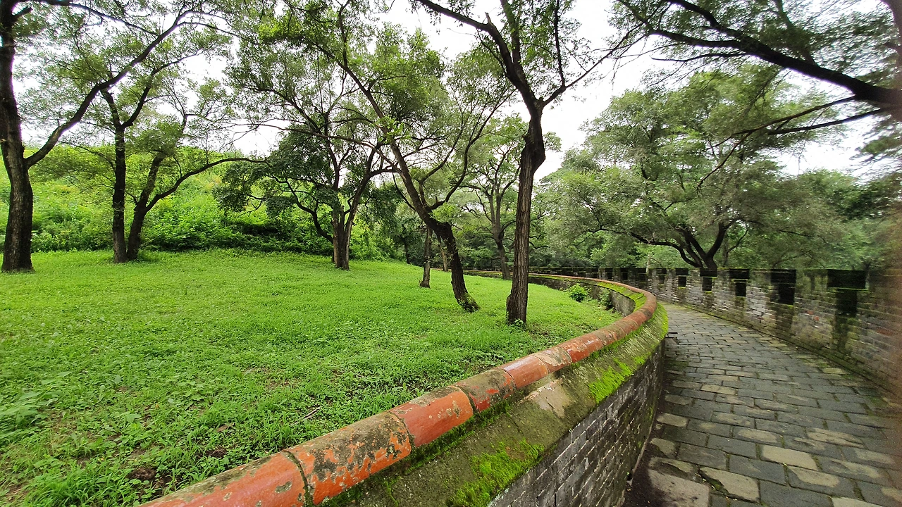 거북이 비석을 지나가면 무덤을 감싸는 성벽이 보인다. 이것도 북릉과 비슷하다.