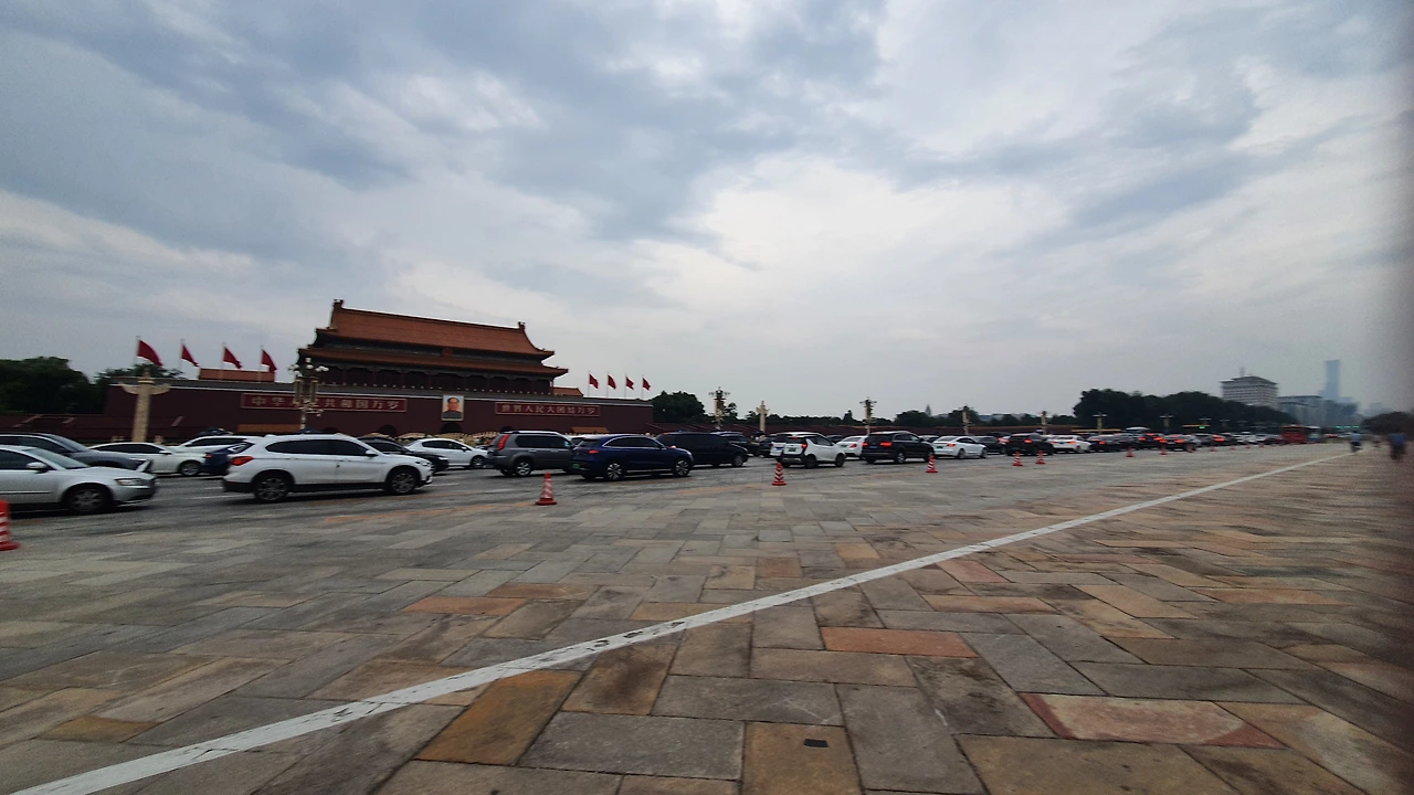 결국 천안문을 지나쳐 한 참 뒤 유턴을 하고 인민 기념비 쪽을 지날 때 사진을 찍을 수 있었다. 절대 멈추면 안 된다니까 한 손에는 핸들 한 손에는 폰을 들고 아슬아슬 곡예를 했다. 나 말고도 그런 사람들이 많았다.