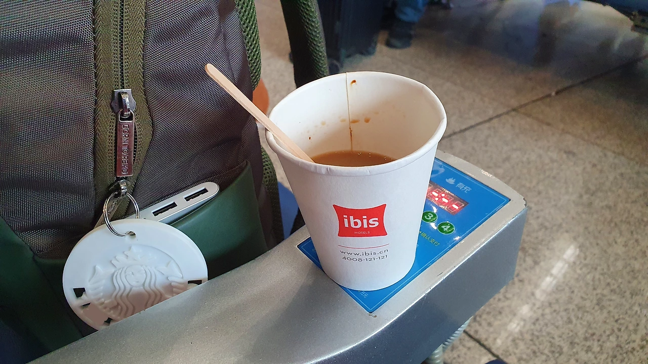 선양역에 도착하니 오전 6시. 아직 시간이 좀 남아서 커피를 타 먹었다. 컵은 호텔에서 한번 쓰고 버리기 아까워 가지고 나온 거.