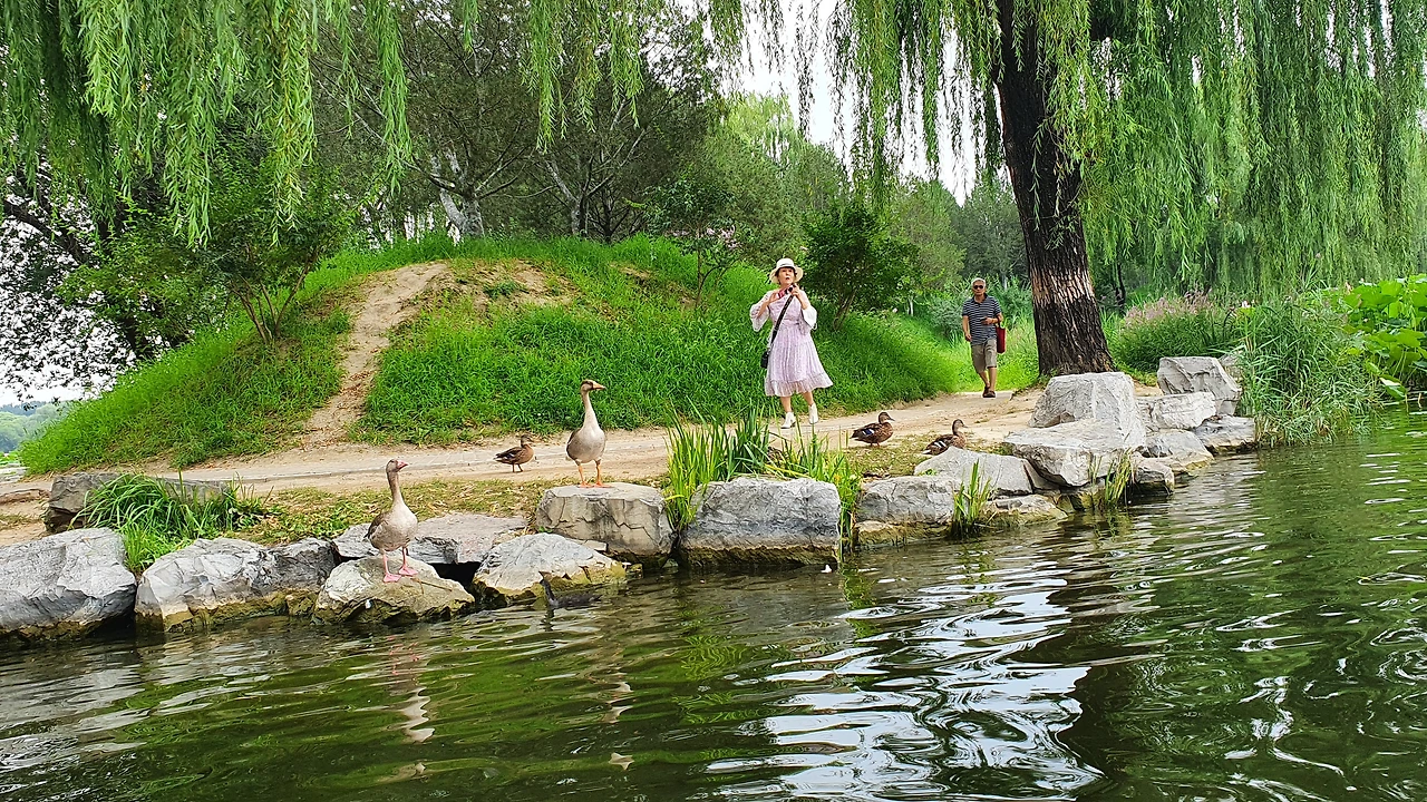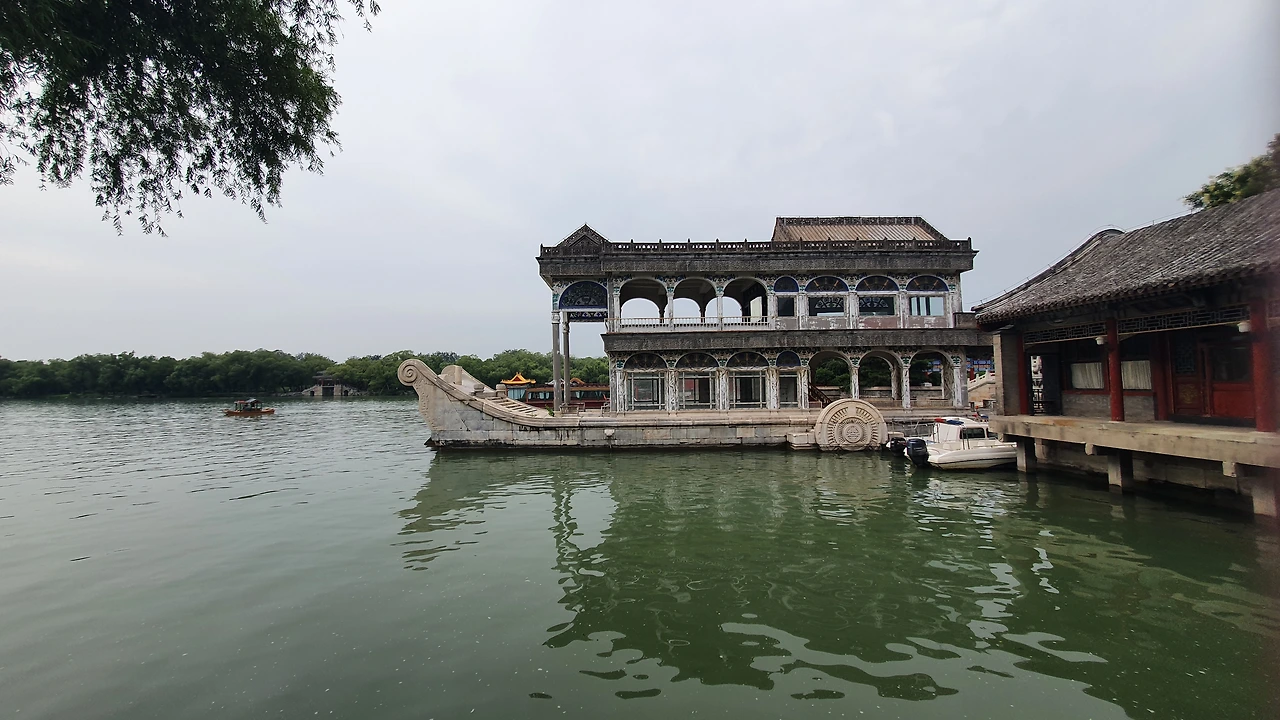 배 타고 가다가 오리가 광합성하는 모습 포착. 너무 귀엽다. 원명원 호수 2개를 보고 석조건물을 보러 갔다.
