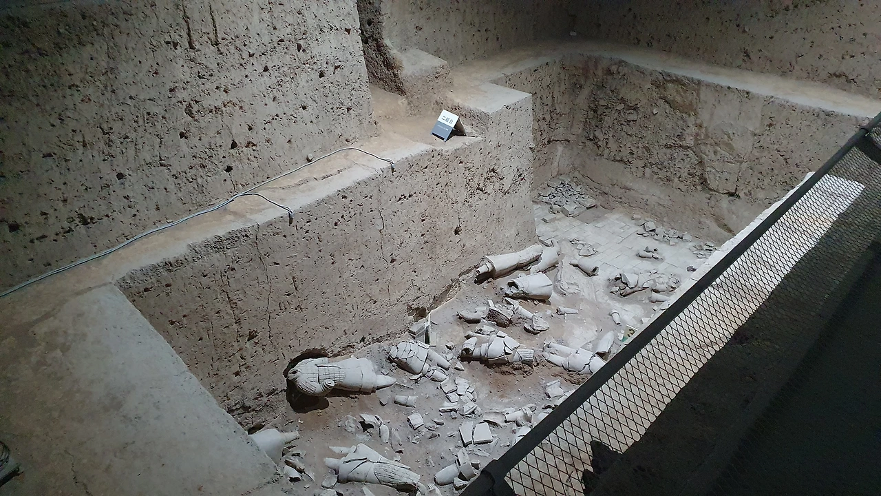 2관은 여기저기 목이 잘린 병마용들이 있고 완전히 부서진 것들도 있다. 덕분에 사람들이 가장 적어서 편하게 관람할 수 있었다. 부서진 한 조각도 소중한 유물이니 그대로 잘 보존되면 좋겠다.