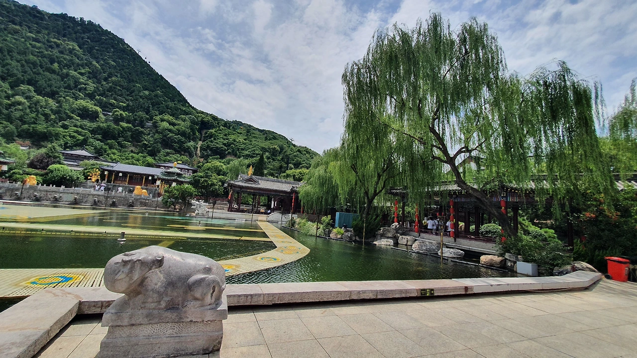 화청궁은 당나라 현종이 양귀비를 위해지어 준 온천 궁으로 곳곳에 양귀비와 현종의 사랑 이야기가 묻어나 있다. 입장료는 120위안이고 뒤의 여산을 타고 케이블카 타는데 90위안인가 더 든다. 나는 산 탈 마음이 없어서 궁만 구경했다.
