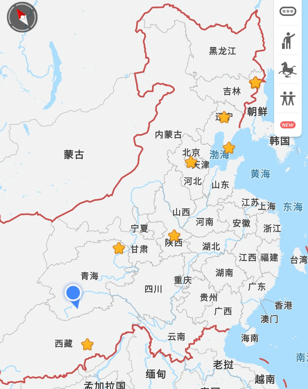 칭짱열차를 타고 시닝에서 라싸를 향해 가고 있다. 중간에 지도를 캡처한 것인데 하룻밤을 꼬박 가고도 칭하이성을 벗어나지 못했다.