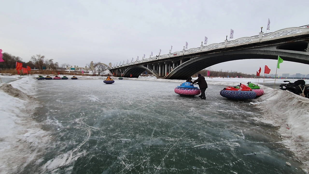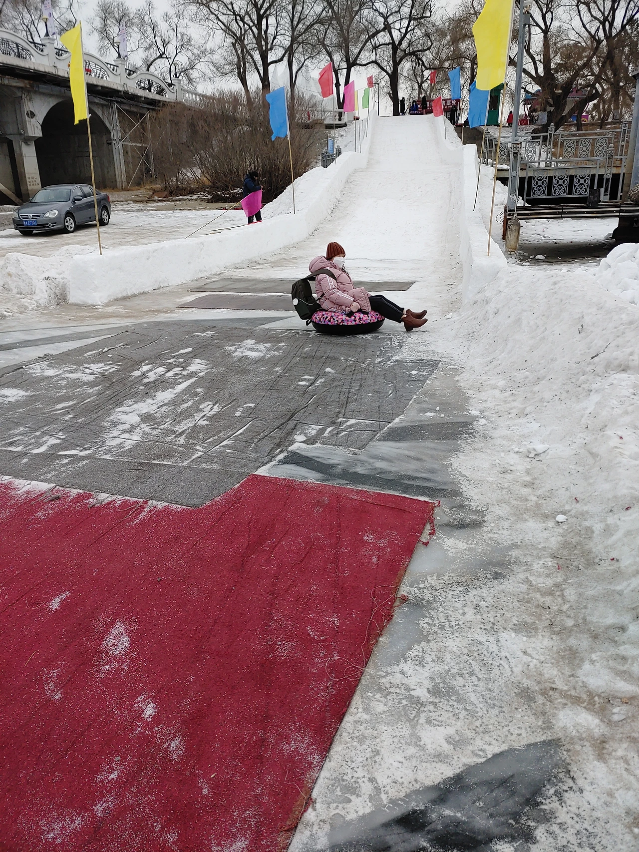 작은 것도 많은데 엄청 귀엽다. 눈이 생각보다 단단해서 절대 녹지 않을 것 같다. 눈꽃 축제 입구 근방에는 썰매랑 송화강 말타기 등의 여러 놀이가 있는데 50-100위안 정도 한다. 우리는 눈썰매(50위안)와 범퍼카(50위안)를 타기로 했다.