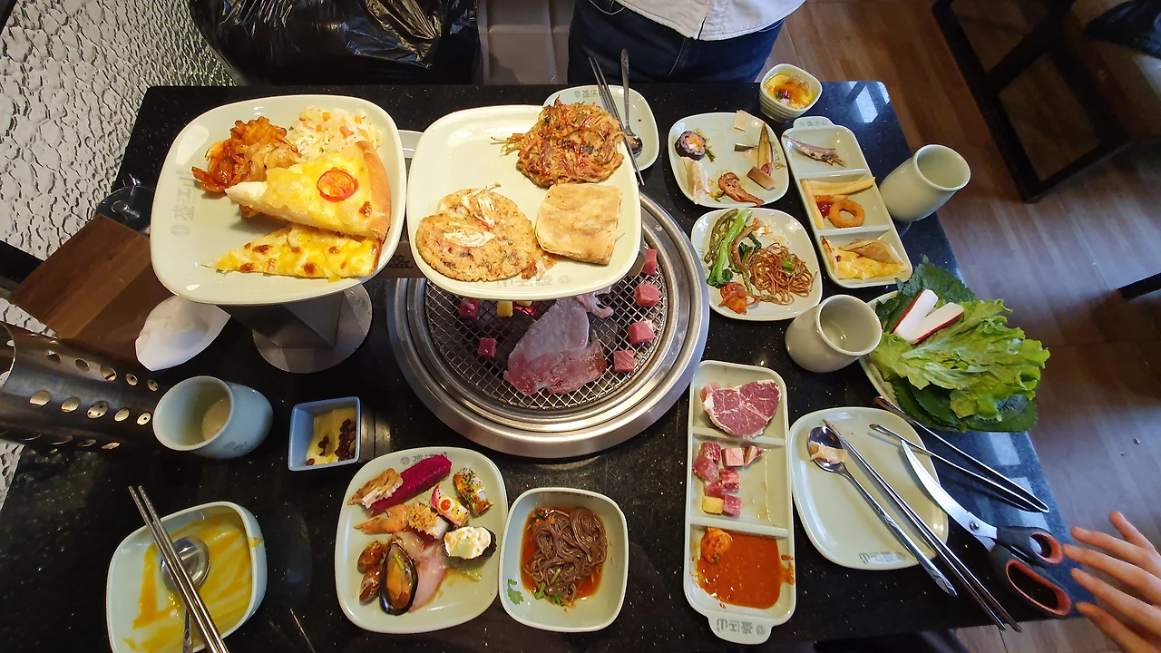 지하철로 시내에 내린 후 지도에서 ‘미식(美食)’을 검색하면 근방의 맛집이 나온다. 그중 사진이 마음에 드는 곳에 갔는데 휘황찬란한 뷔페였다. 한중일서양식 까지 완벽하게 모인 이곳은 평일 점심 79위안. 감사한 마음으로 들어와 열심히 먹었는데 지금까지 간 식당 중 가장 마음에 들었다. 특히 테이블 별로 불판이 있어서 고기와 전을 데워 먹을 수 있어 좋았다. 우리가 꽤 많이 먹었다고 생각했는데 다른 사람들 상을 보니 정말 엄청나더라. 게다가 알고 보니 술도 포함된 가격. 위치가 좀 찾기 어려웠지만 정말 최상의 서비스였다.