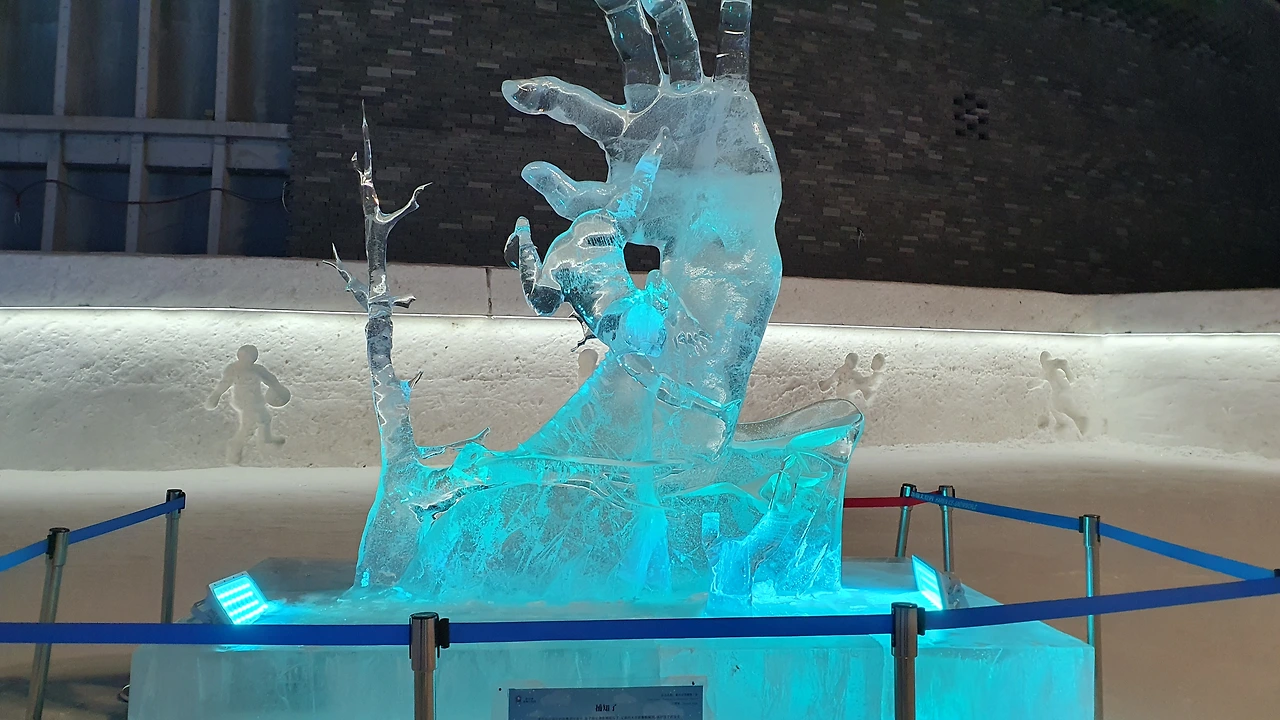 출구 쪽에는 아름다운 조각상들이 전시되어 있었다. 눈으로도 만들기 어려워 보이는 아름다운 조각상을 얼음을 깎아 만들다니 정말 대단하다. 참고로 중앙대로에도 이런 조형물이 보이는데 빙등제에 있는 것들이 더 아름다운 것 같다.