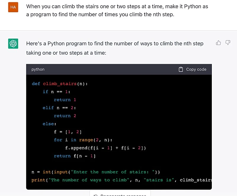 결과는 GPT 승. 심지어 시스템에 무리가 가는 재귀가 아니라 for문으로 깔끔하게 풀었다. 입출력까지 완벽하니 할 말이 없었다.