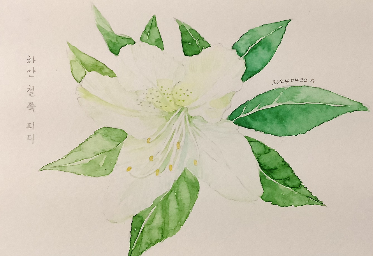직장 내 산책길에 흰 철쭉이 많이 피어서…