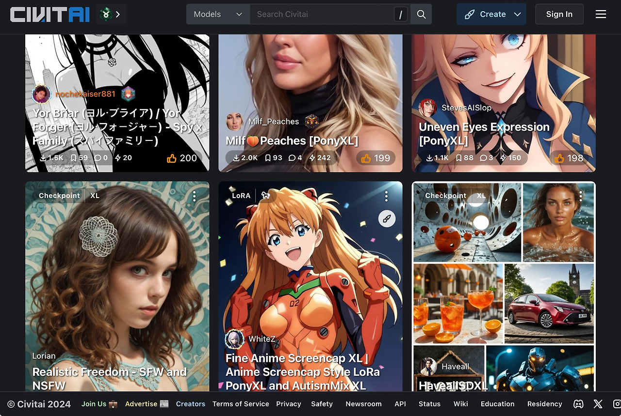 CIVICAI 사이트에 가면 그림 모델이 즐비한데 2~6기가 정도만 다운로드하면 방구석에서 내가 원하는 풍의 그림, 만화, 일러스트뿐 아니라 애니메이션까지 생성 가능하다. 애니메이션은 내 GPU로 좀 오래 걸려서 일러스트까지만 생성해보고 있다. 여기서 잠깐. ‘그리다’가 아니라 ‘생성한다’라는 단어를 쓰는 이유는 인공지능으로 그림을 만드는 과정은 절대 ‘그린다’는 느낌을 받기 어렵기 때문이다. 물론 녀석이 생성한 그림은 내가 몇 날 며칠을 밤을 새워도 그리기 힘든 고퀄리티라서 요즘은 그림 쪽으로 진로를 잡지 않은 과거의 나에게 매우 감사한다.