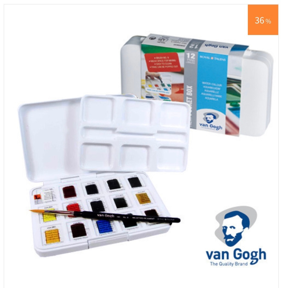 처음 수채화를 시작하는 분이라면 과감히 반 고흐 물감을 추천한다. 일단 고체 형태라 짜서 말릴 필요도 없고 휴대용 붓도 들어 있고 팔레트도 유용하며 15색 발색도 최고다. 그리고 이 모든 게 단돈 2만 9천원. 솔직히 물감은 전문가용부터 사용하는 걸 권장하는데 반 고흐는 예외이다. 이것 보다 상위 등급으로 램브란트가 나오는데 학생용 반고흐가 워낙 좋아서 램브란트 물감이 인기가 없다고 할 정도. 색도 하나하나 무척 예쁘고 유용해서 반고흐와 파브리아노 파랑이만 가지고 몇 년을 그렸던 것 같다.