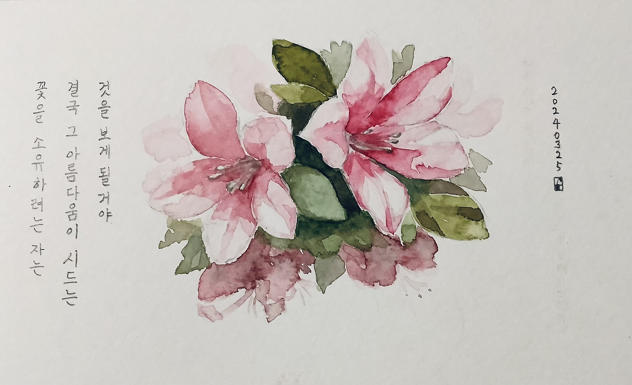 어렸을 때, 수채화는 항상 어려웠다. 나이 들어서 그림 좀 그려볼까, 하다가 우연히 수채화를 접하게 되었는데 그때 느낀 것이 ‘그동안 재료가 잘못했구나’였다. 학생 때 쓰던 수채화 도구들은 대부분 낮은 등급의 물감들이고 무엇보다 종이는 수채화 전용지가 아니라 전문가도 그리기 어렵다. 가끔 다이소 물감으로 아름다운 작품을 만드는 분들이 있는데, 알고 보면 그 아래 종이는 몇 만 원짜리 아르쉬…