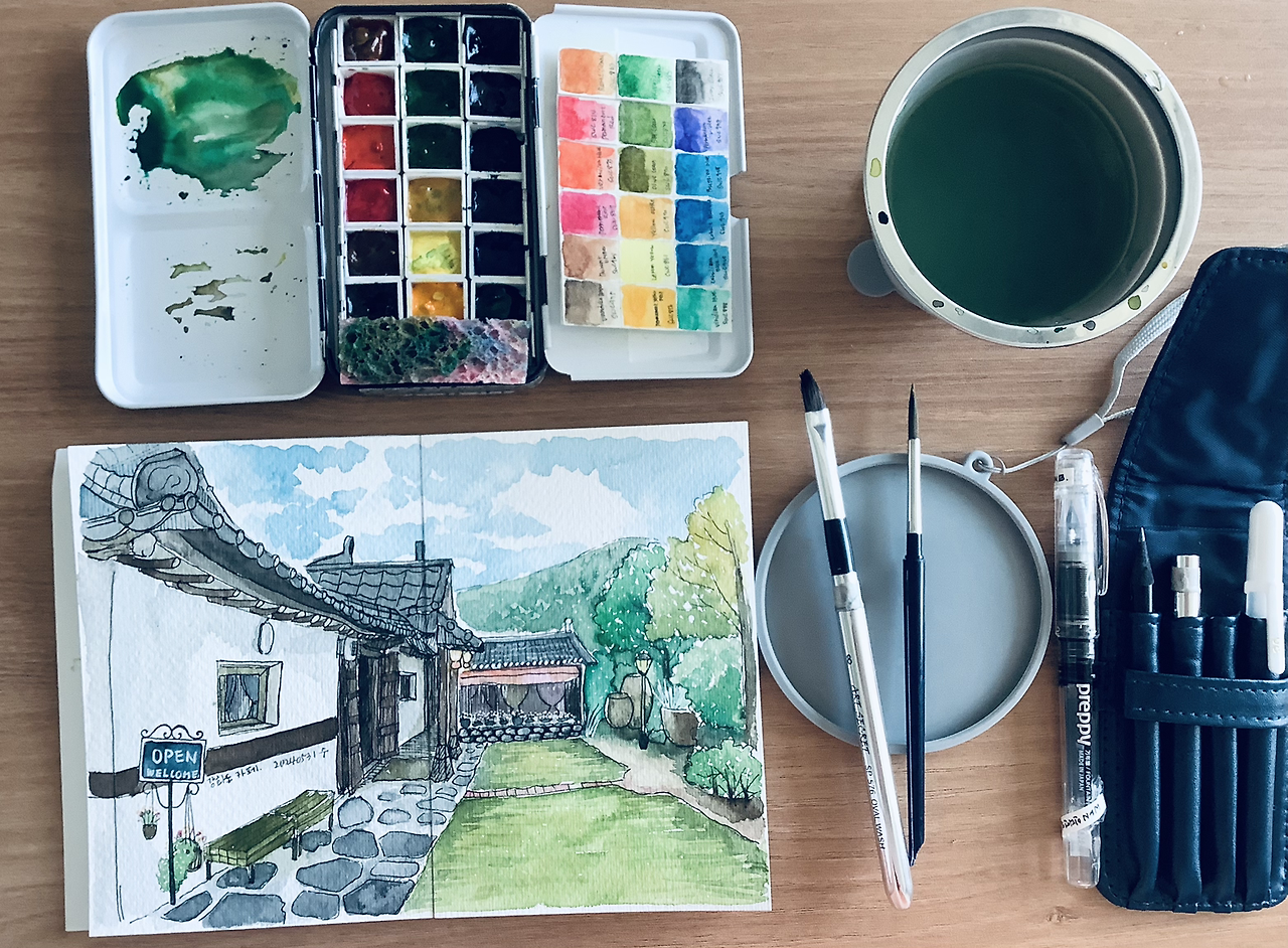 요즘 어반스케치 도구가 참 많은데 되도록 가성비만 잘 찾아서 즐거운 야외 스케치를 즐기기 바란다.